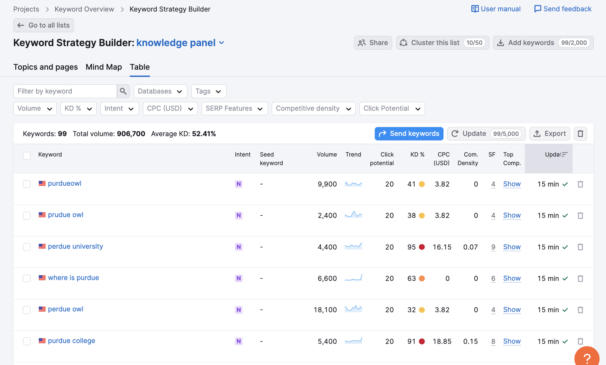 Keep searching for your exact brand name every once in a while to check if you've earned a knowledge panel. You can also use Semrush's Position Tracking tool to keep tabs on all the SERP features appearing for your keywords.