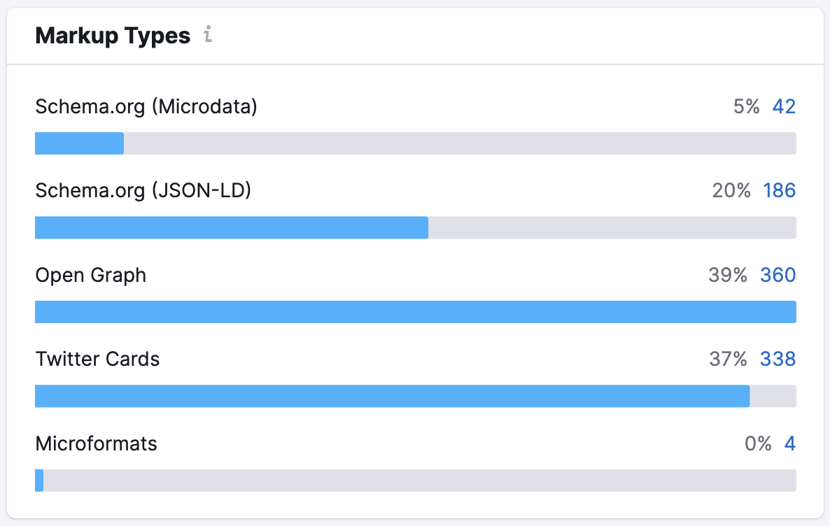 If you see in this report that most of your pages are not using any markups at all, you might want to try implementing some into your website’s HTML.