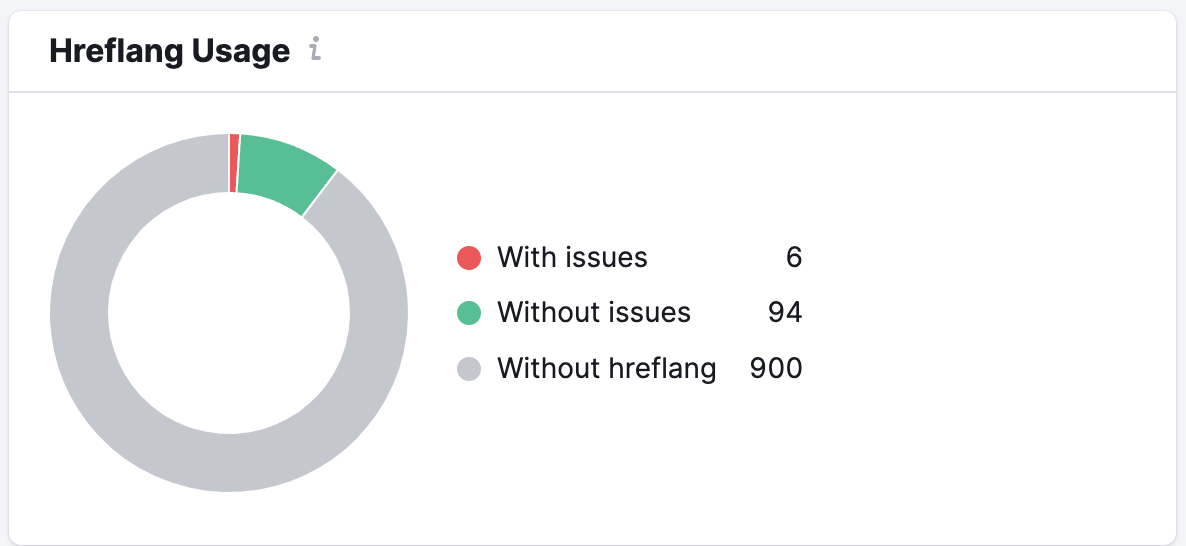 The Hreflang attribute (rel="alternate" hreflang="x") is a HTML tag that is used to specify the language and regional URL of a web document. For webmasters that operate global business websites, this tag is an important part of an international SEO strategy. For more information on your website’s use of this tag, navigate to the International SEO tab of Site Audit or click on the red “with issues” section of the donut chart.