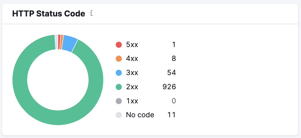 First is a chart detailing any HTTP status codes that were found during the crawl. The chart will list if there were any 5xx, 4xx, 3xx, 2xx, or 1xx status codes on your site, and it will also tell you how many pages had no HTTP status codes. The chart can be filtered and can be clicked through to view a pre-filtered crawled pages report to show the exact pages with the status codes you want to see.